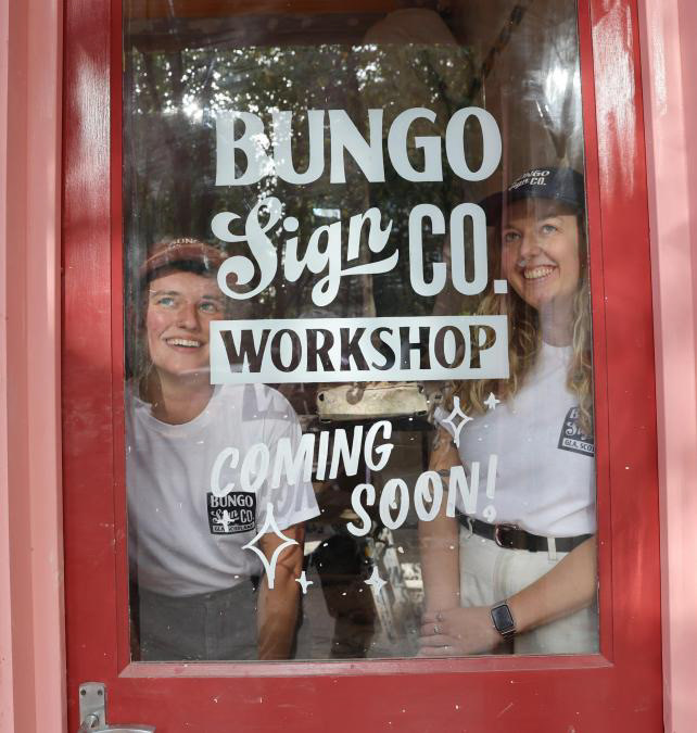After spending several years working solo in Glasgow the two painters met in 2021. Hana and Rachel then founded sign painting collective Bungo Sign Co in 2022. In the same year they created and hosted 'Burds of the Brush' in Glasgow – a meet of women, trans and non-binary sign painters which has become a global movement in the male dominated world of sign painting.