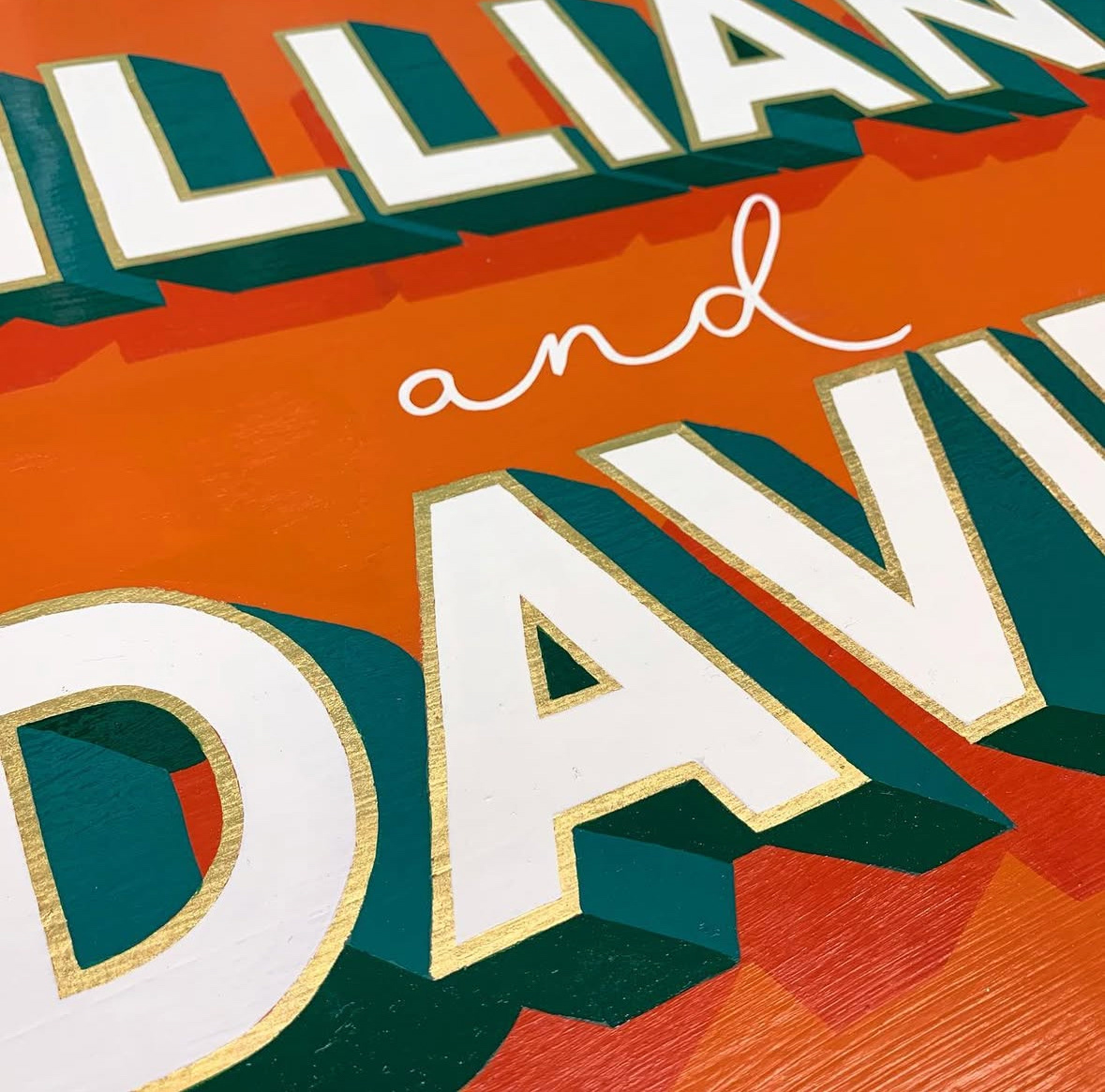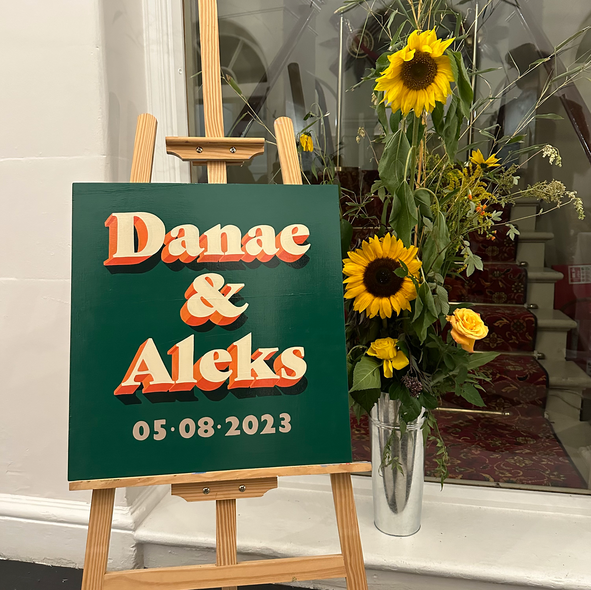We offer bespoke commissions for private clients, such as gifts or wedding signs, in a range of styles and sizes, on wood, glass or most other hard surfaces. We can work with an existing design or create something special for you or a loved one. Below are some recommended size guides and previous examples.