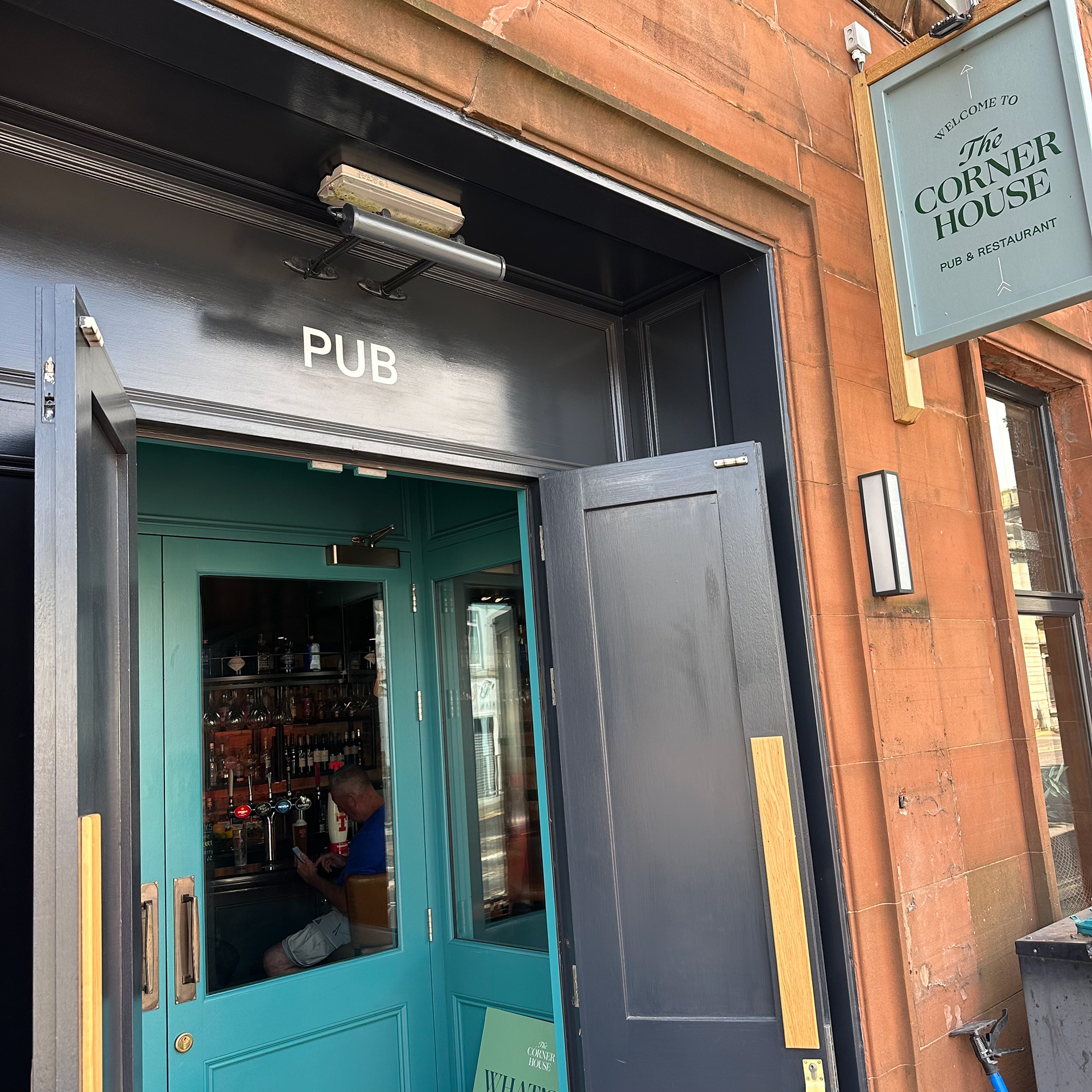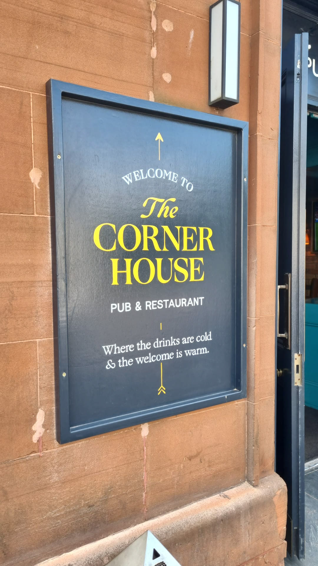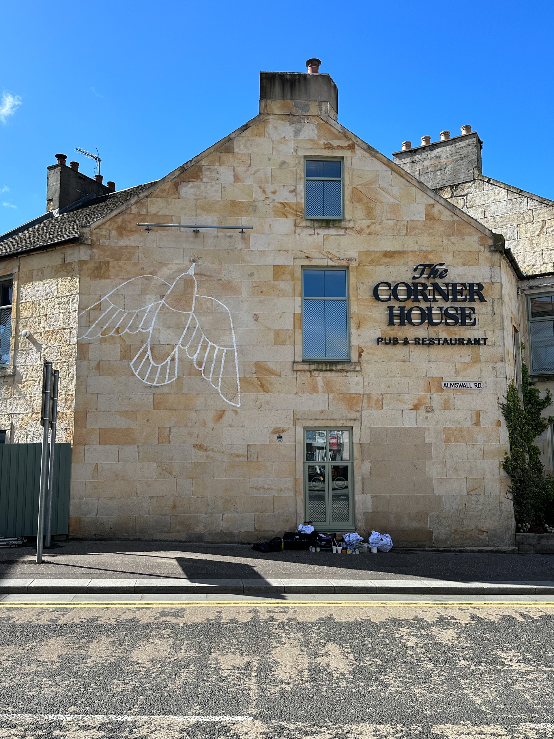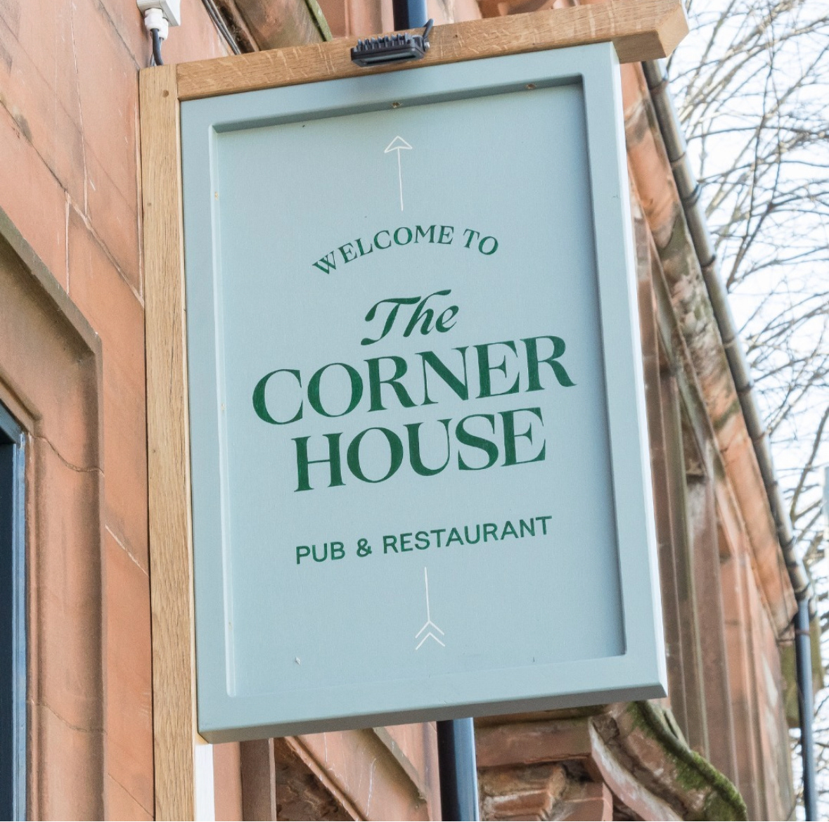 A complete set of swing signs, boards and ghost sign mural for The Corner House in Kilwinning. Branding designed by The Touch Agency.