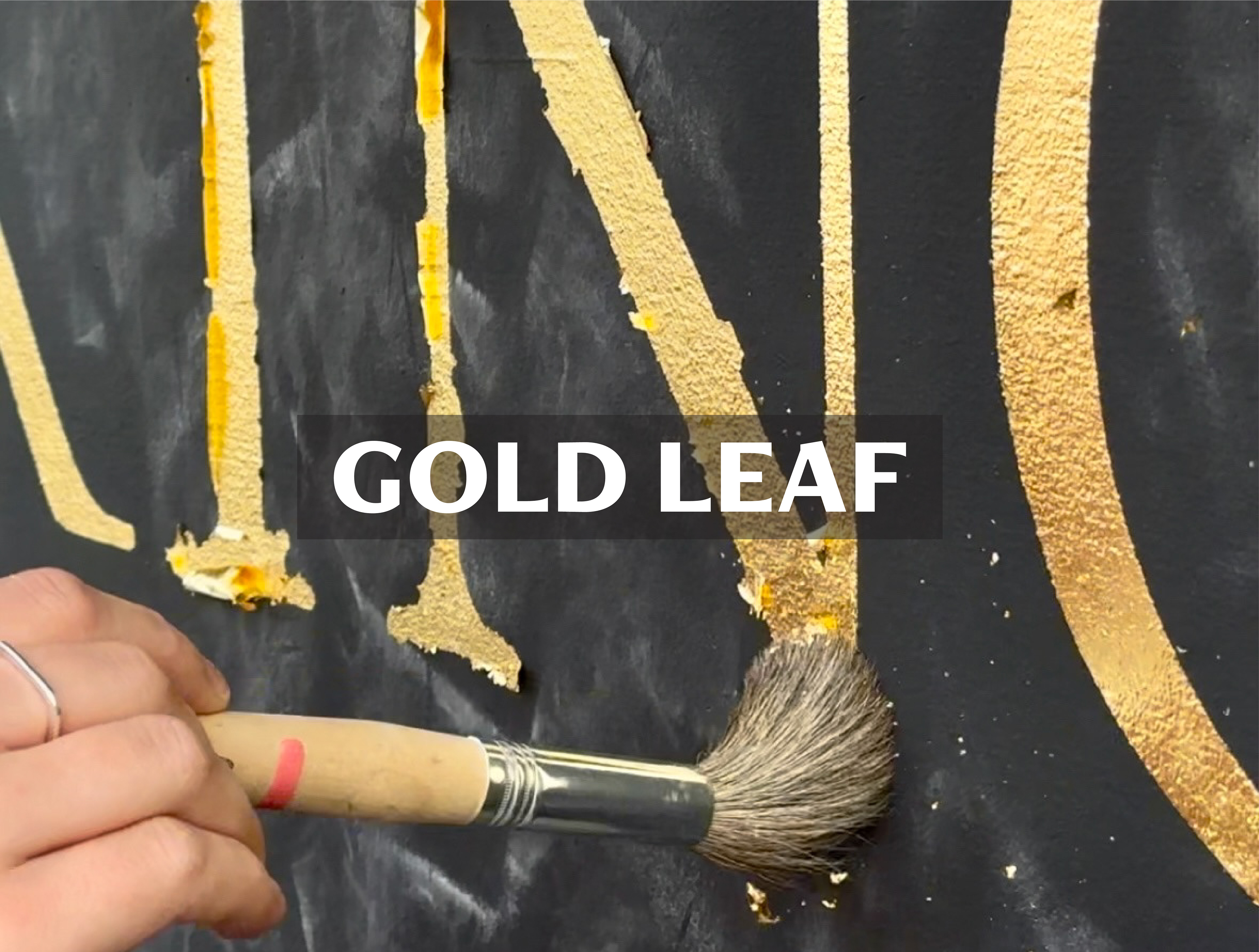 We love working with gold leaf – we use hand beaten 22-23ct gold leaf for all our gilding projects, which can be used on shopfronts, walls or windows. It’s versatile, long lasting and luxurious.